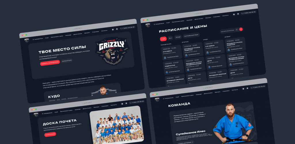 Начали с глубокого анализа потребностей и целей клуба «Grizzly». Было важно понять, как отразить на сайте работу клуба и что лучше всего представить их аудитории.