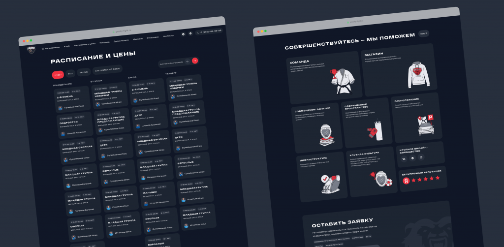 Создали имиджевый проект, привлекающий внимание к единоборствам и спорту в целом. Сайт отличает интуитивно понятный интерфейс, высокая производительность, простота в использовании и удобное управление через административную панель. В результате интерес к клубу повысился как среди действующих, так и среди потенциальных участников.